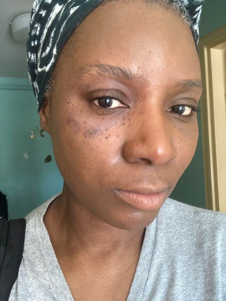 Les criminels ont brulé ma peau à plusieurs reprises, et littéralement détruit la dentition de ma fille Jéméa, 5ans, qui dort avec moi. J’imagine qu’elle a été une victime collatérales de leurs tirs nocturnes.