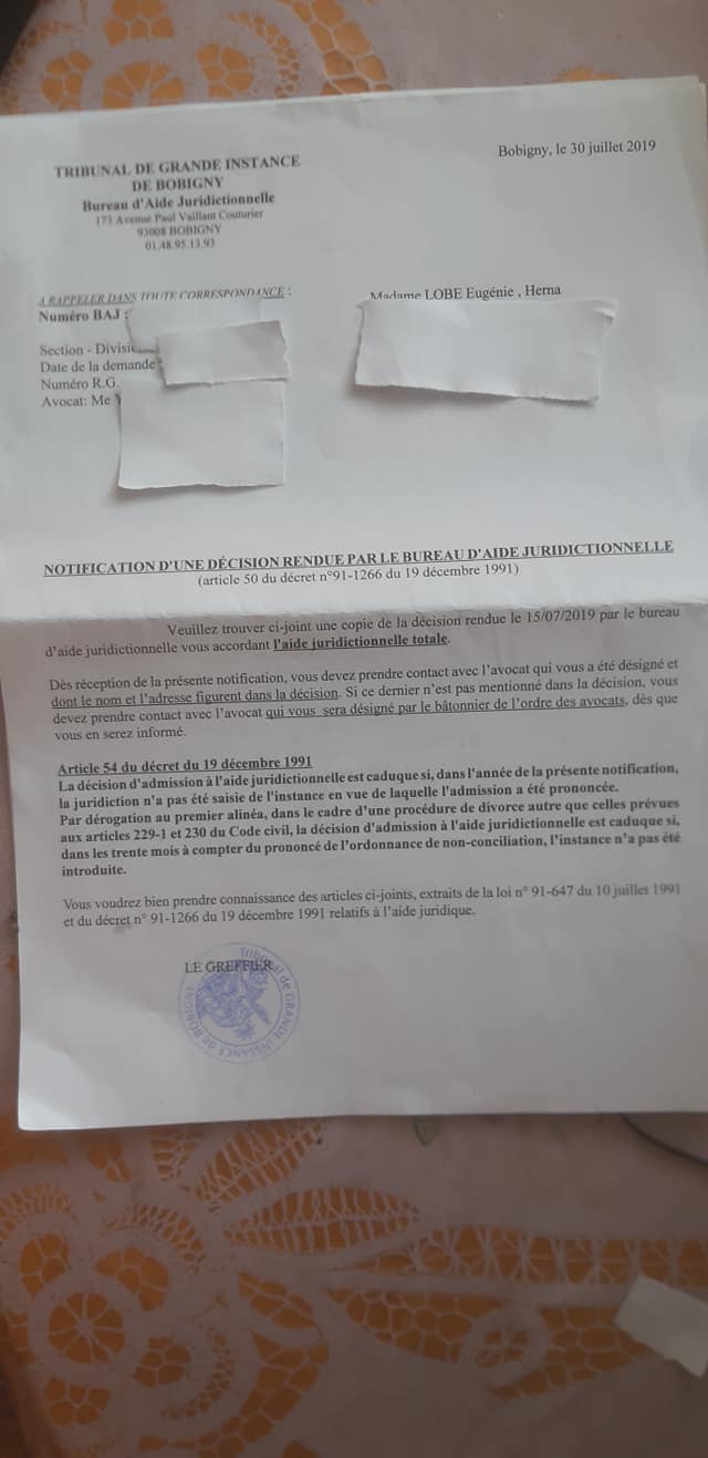 J’avais saisi le TGI de BOBIGNY et demandé un avocat pour m’aider à accéder à ma succession. 5 avocats successifs ont été désignés et tous se sont désistés. Au final, je n’ai JAMAIS PU ACCEDER A MES DROITS, bafoués par ma famille et un système illégal qui les protège.